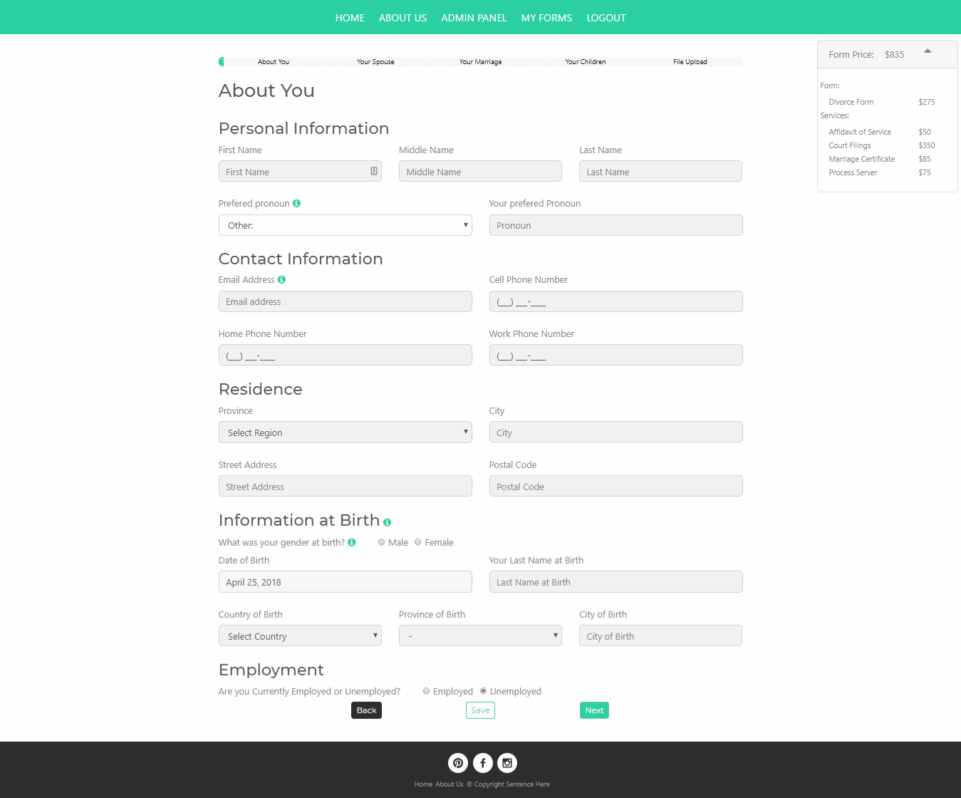 Easy Forms – About Spouse Form