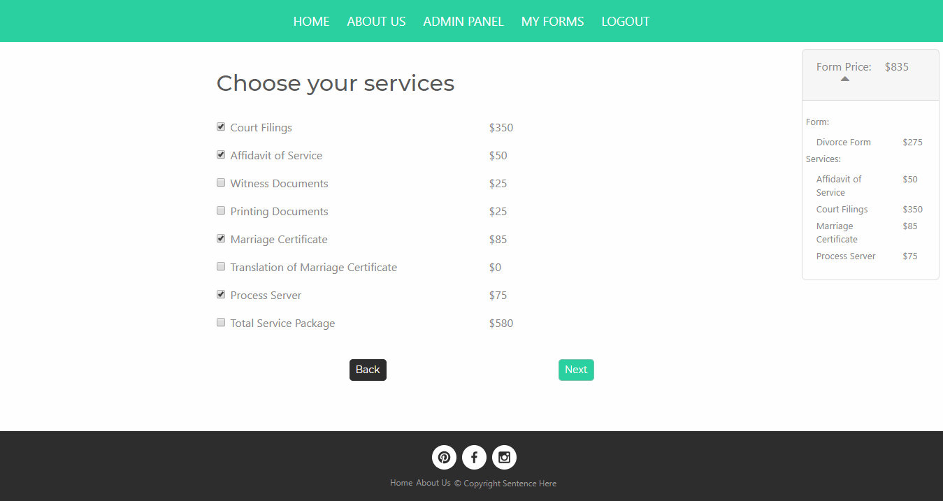 Easy Forms – Users have the option to choose their services