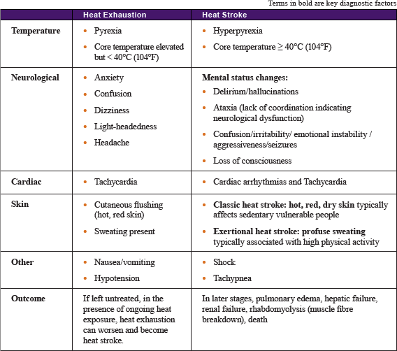 Know the signs and symptoms of heat exhaustion vs. heat stroke: