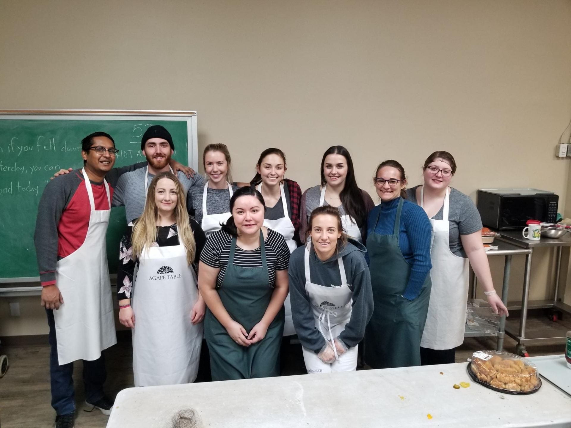 My name is Samantha Eveleigh, and I am a third-year nursing student. This year I have spent well over 100 hours working as a volunteer at Agape Table, a local soup kitchen that helps feed breakfast to 350-400 people a day who are experiencing low income or homelessness. Why do I do it? Growing up, my family was considered low income and utilized some resources like Agape Table. I felt it was my time to give back. I wanted to make a difference. While working at Agape Table, I repeatedly noticed that the kitchen was short on food donations. I quickly realized I couldn’t do it alone, so I started looking for guidance and support from others. I spoke with one of my nursing instructors, Tracey Fallak, and she along with many other instructors supported me throughout my food drive. In Discipline of Professional Nursing, we learn that we can lead from any chair (Zander & Zander, 2002).
