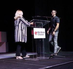 Congratulations to Chris Hofer for winning the ARNM gold medal presented by Loreley Fehr, President-Elect, Association of Registered Nurses of Manitoba.