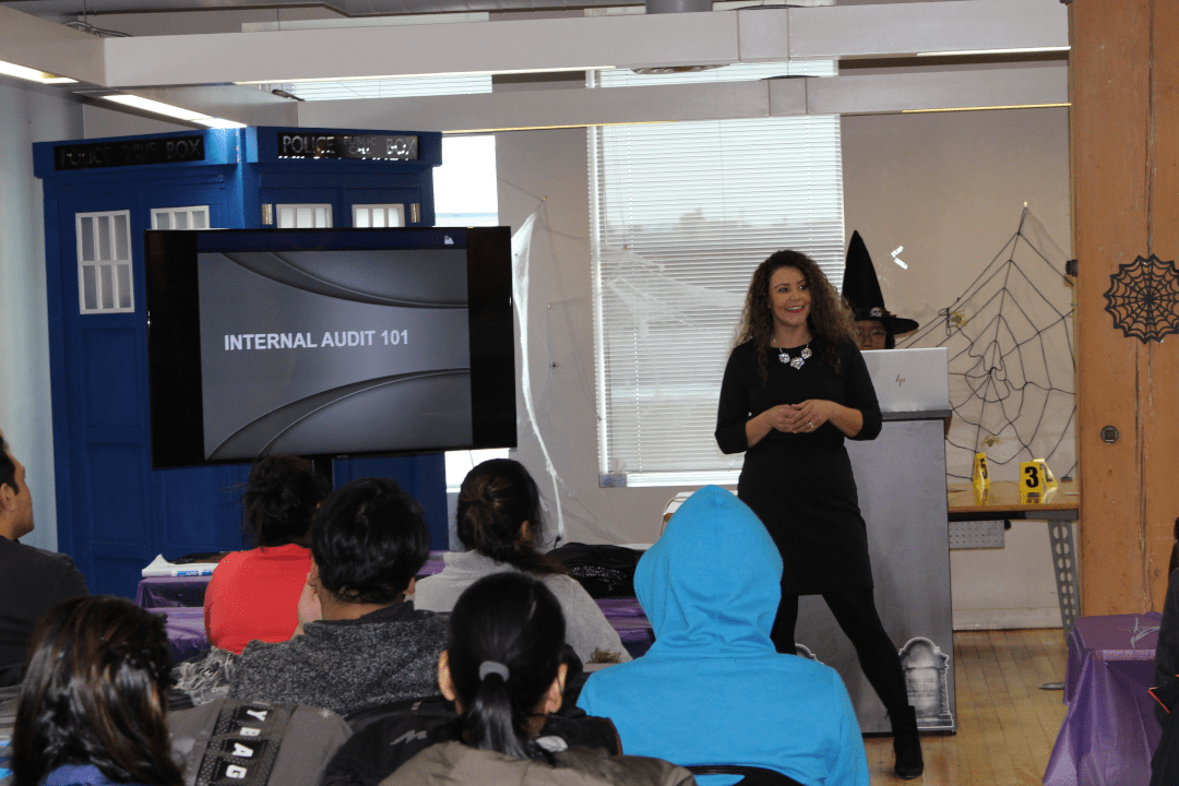 Along with a free pizza lunch and Halloween themed treats, students were treated to the following presentations by Deloitte, Manitoba Liquor & Lotteries, Auditor General of Manitoba, and Red River College:
