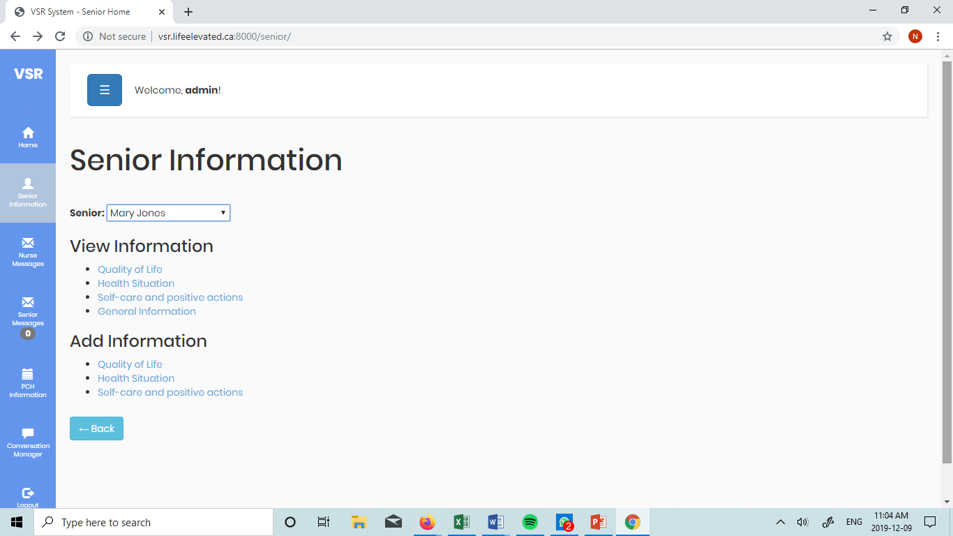 - Website with information collected from the avatar, seniors, and nurses