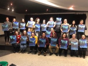 Our students were away from the College that week so we moved the dates to December 16th-20th, 2019. We started off by hosting a Paint Night led by Amber Van Ma’iingan from Painting on the Prairies. The event was fully covered by the Healthy Minds, Healthy College Initiative, and organized by Breanna Sawatzky Mental Health Coordinator and one of our NSA members Marlo Pereira- Edwards.