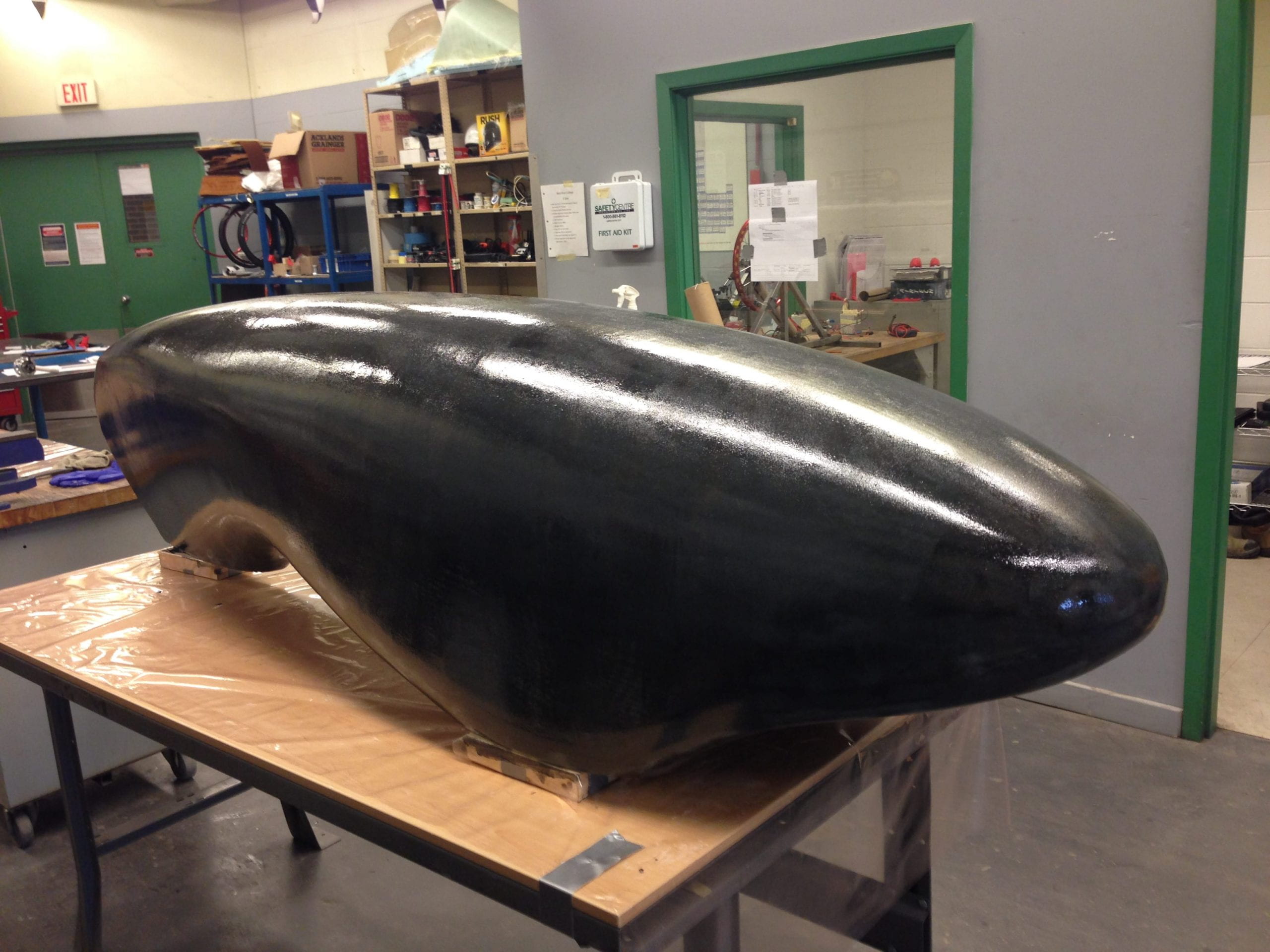 There’s no door to get in or out. Prototype teams design the pod to split in half along the horizontal. It’s the best method for fabricating and eliminating cracks along the side of the body (which can aversely affect aerodynamics.)