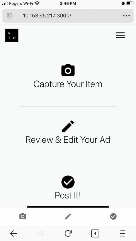 Selling used physical items online has traditionally been a time-consuming process. Writing a good product description and pricing it appropriately can be challenging. Sponsored by North Forge, the RID team came to the ACE Project Space to find a way to create an application to simplify the selling process. Our BIT and BTM students built a prototype application that quickly populates a product description by simply taking a photo of the product. The students developed a web application that supports user authentication using Firebase, Google for photo storage, and integration of Vision AI and the eBay API to populate recognize products, populate descriptions, and determine price ranges.
