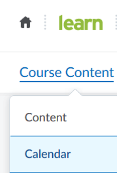 - Towards the top left hand corner of your screen, click on “Course Content” and then “Calendar”