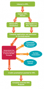 The RPL process identifies, assesses, and recognizes formal learning, non-formal, and informal learning gained through education, work, life, military training, personal study, or other learning.