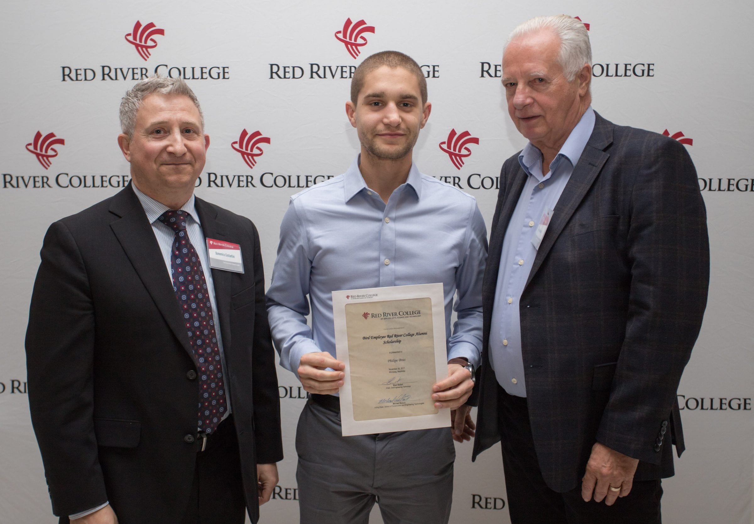 Terry Jacobson (shown at right), an RRC alum and 40-year Bird Construction employee, presented the $1,000 award, along with Dom Costantini, the company’s vice-president and district manager.