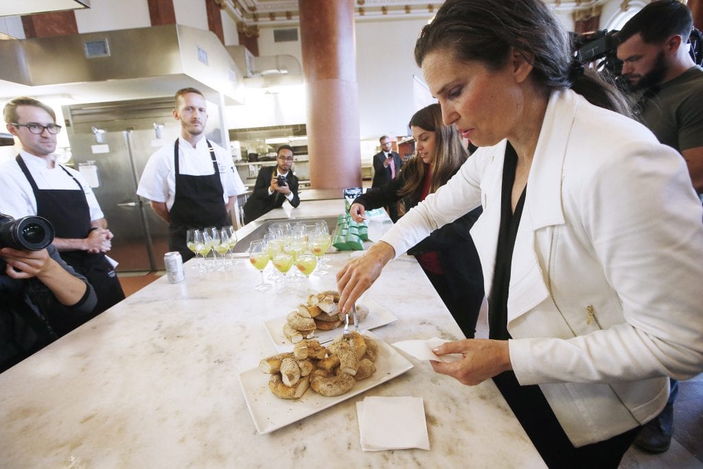 Kirsty Duncan, Minister of Science and Sport, samples some food products after announcing a total federal investment of $10,678,322 in research infrastructure funding for recipients awarded in the latest round of the Canada Foundation for InnovationÕs (CFI) College-Industry Innovation Fund (CIIF) competition at Red River College in Winnipeg, Wednesday, January 18, 2012. The funding will support 11 projects at 11 different colleges/polytechnics across Canada. Canadian Press Images/John Woods