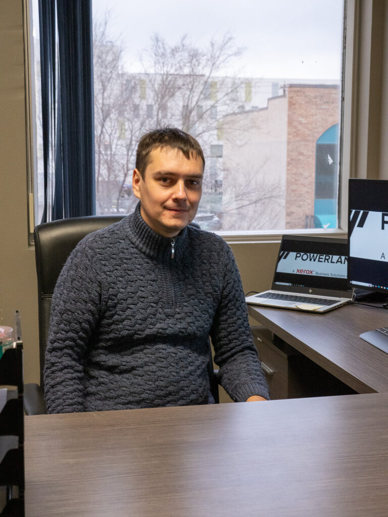 Vitalii Vitkovskyi, a student in the Centre for Newcomer Integration, supported by BMO (CNI), has embraced a new chapter in Canada. Originally a PHP developer and telecommunications professional in Ukraine, he is now working to enhance his language skills and regain footing in the tech field through a work placement at Powerland.
