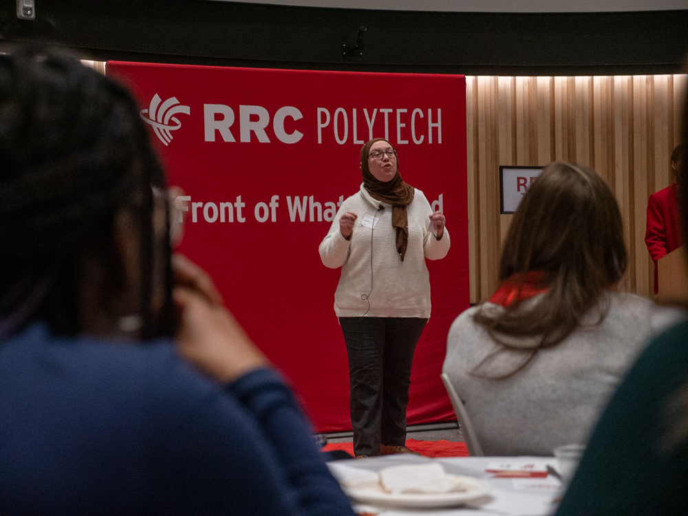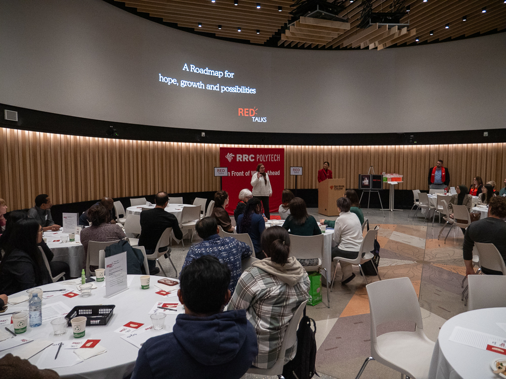 Students, instructors and guests gathered at RRC Polytech’s Roundhouse on Feb. 26 for RED Talks Internationally Educated Health Professionals (IEHPs) an evening designed to help learners build confidence using English while discussing topics related to working in Canada’s health-care system.