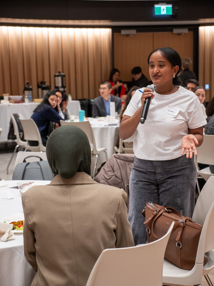 Throughout the evening, students discussed the speakers’ messages at their tables and shared their own experiences navigating language, education and professional pathways in Canada.