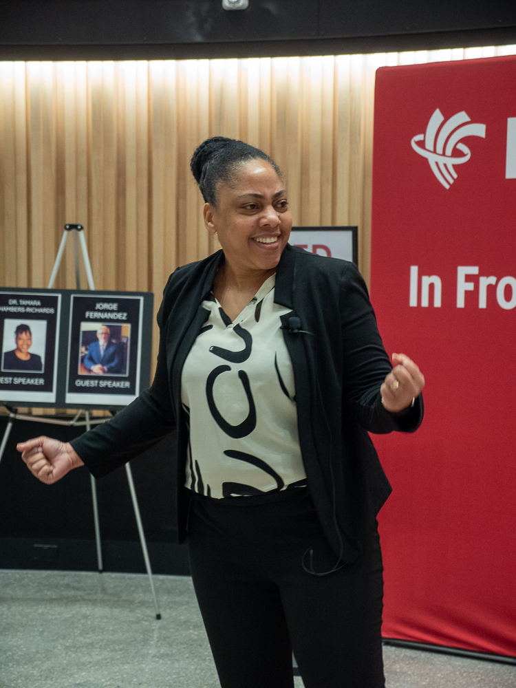 The event opened with Dr. Tamara Chambers-Richards, dean of the School of Health Sciences and Community Services. Drawing on her journey across the Caribbean and Canada, she reflected on identity, resilience and the importance of staying connected to one’s roots.