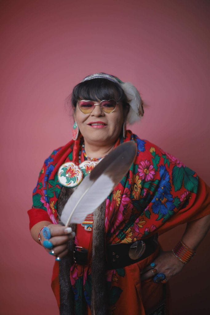 Elder Gayle is a Two-Spirit Anishinaabe dancer, knowledge keeper originally from Pinaymootang First Nation. Pruden embraces both male and female spirits, an identity her community and family have always accepted and supported. Learn more about her story here >
