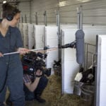 Sometimes it can be a dirty job but the eTV crew are always up to the challenge. Recently, we visited the Grenkow Dairy Farm with Dr. Johnston of Central Veterinarian Services for an examination of reproductive herd health. The video from this shoot supports an Animal Health Technology Curriculum Re-Development PIF project. For a behind the scenes look at this shoot, check out the video and pictures below. No animals or eTV crew members were hurt in the making of this “moooovie.”
