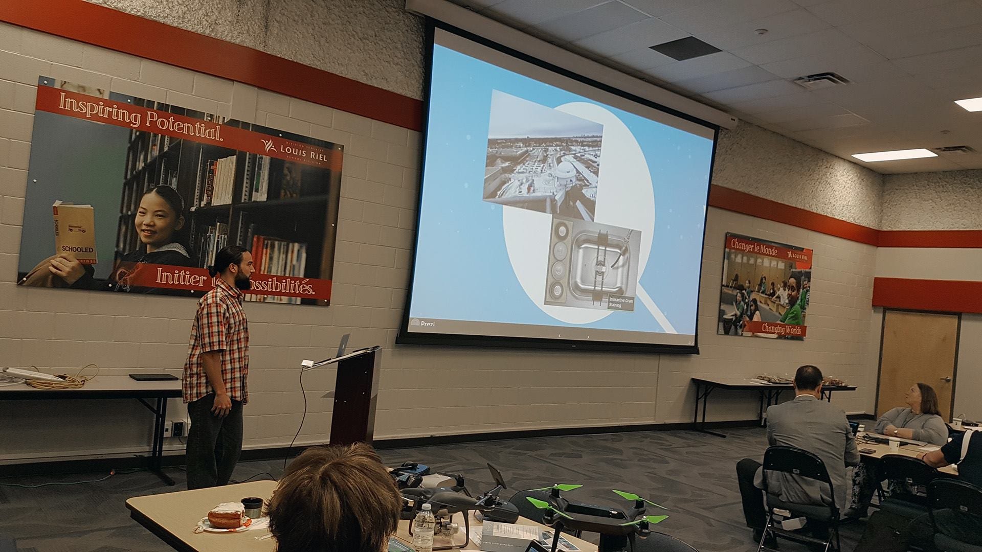 Today ETV was invited to speak about Virtual Reality and Drones for use in the classroom environment at the September MAETL (Manitoba Association of Education Technology Leaders) meeting. ETV was excited to share our knowledge and give educators and technology leaders a chance to experience these technologies in a hands-on way. The event was held at the Louis Riel School Division board offices.