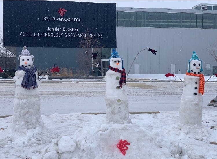 Students, staff and Route 90 Passerbys may notice some new snowy faces on campus as they pass the Jan Den Oudsten Vehicle Research and Technology Centre at the Notre Dame Campus.