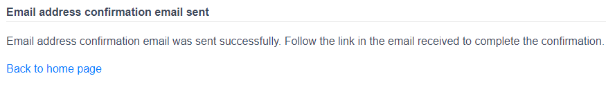 Once you have completed the required fields, select Submit. You will then receive the following message advising to confirm the email that was sent to the email address you entered: