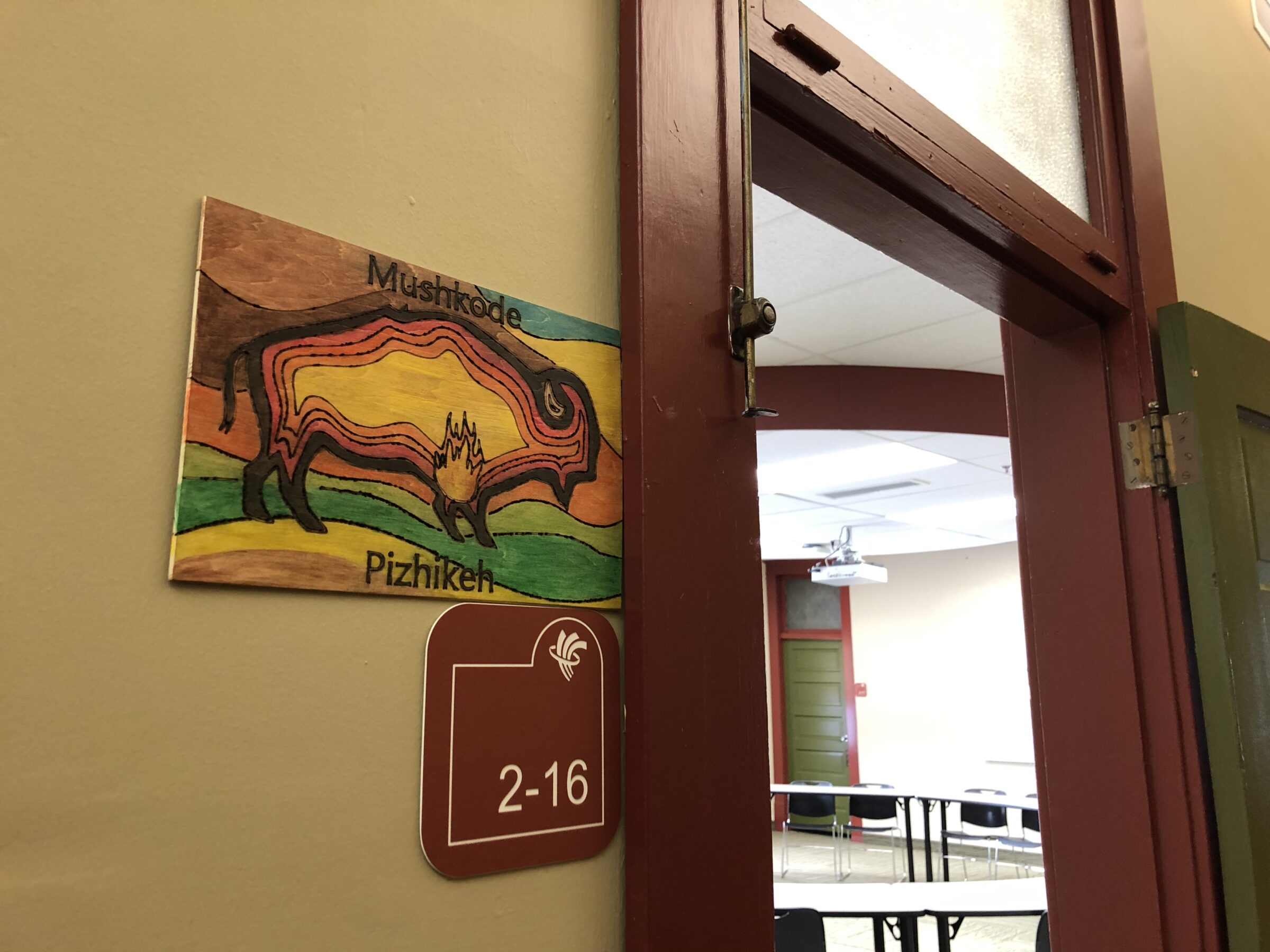 Elder Roulette, a fluent Anishinaabemowin speaker, decided that the room would be called Mushkode Pizhikeh – which means Bison-Fire in English.