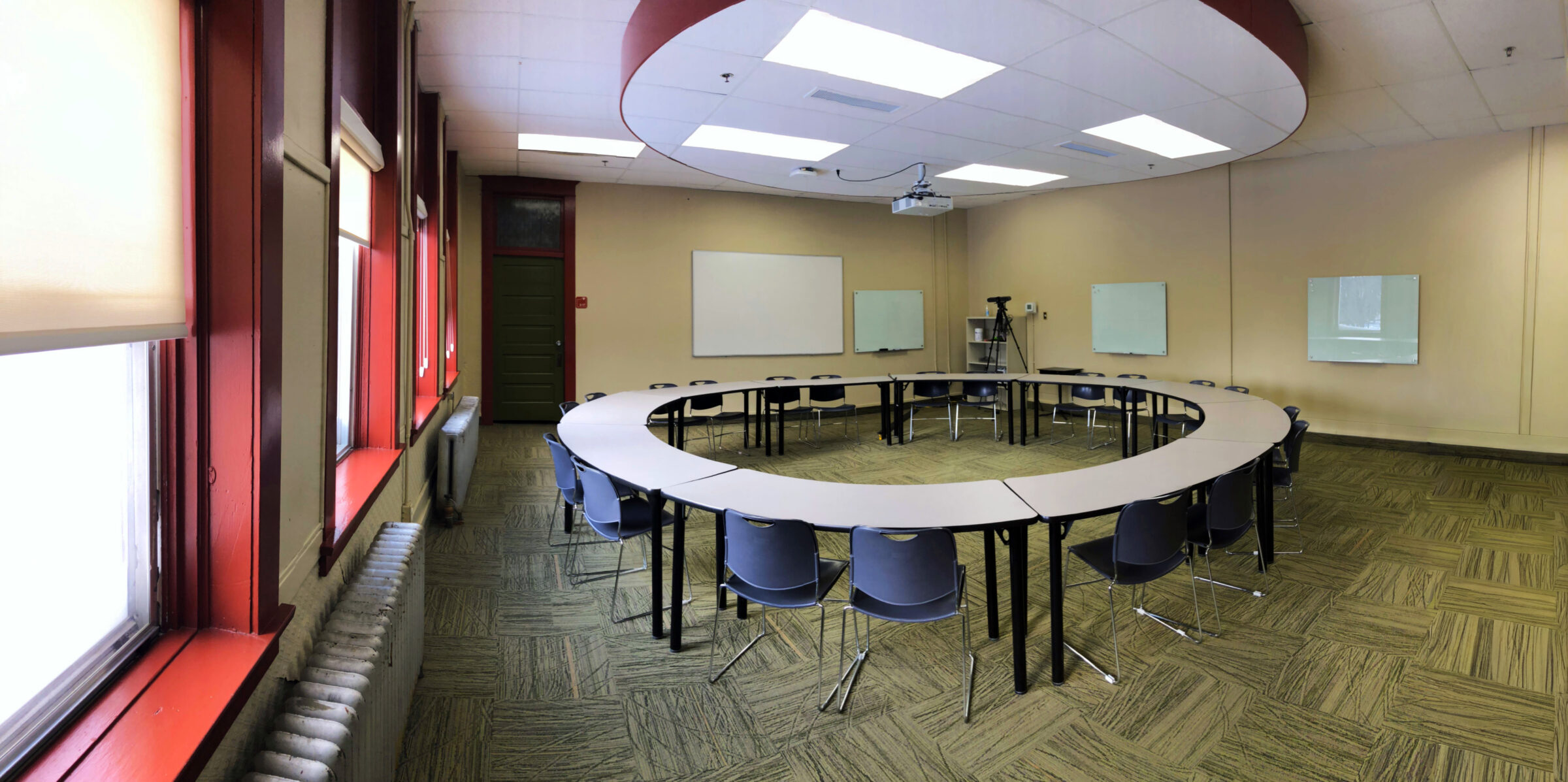 Room 2-16 on the second floor of the Portage Campus is home to a variety of events. Cultural gatherings, consultation sessions, and group meetings make use of the circular tables, where everyone is invited to sit at the same level. The ventilation system is a welcome function to allow for smudging in the space.