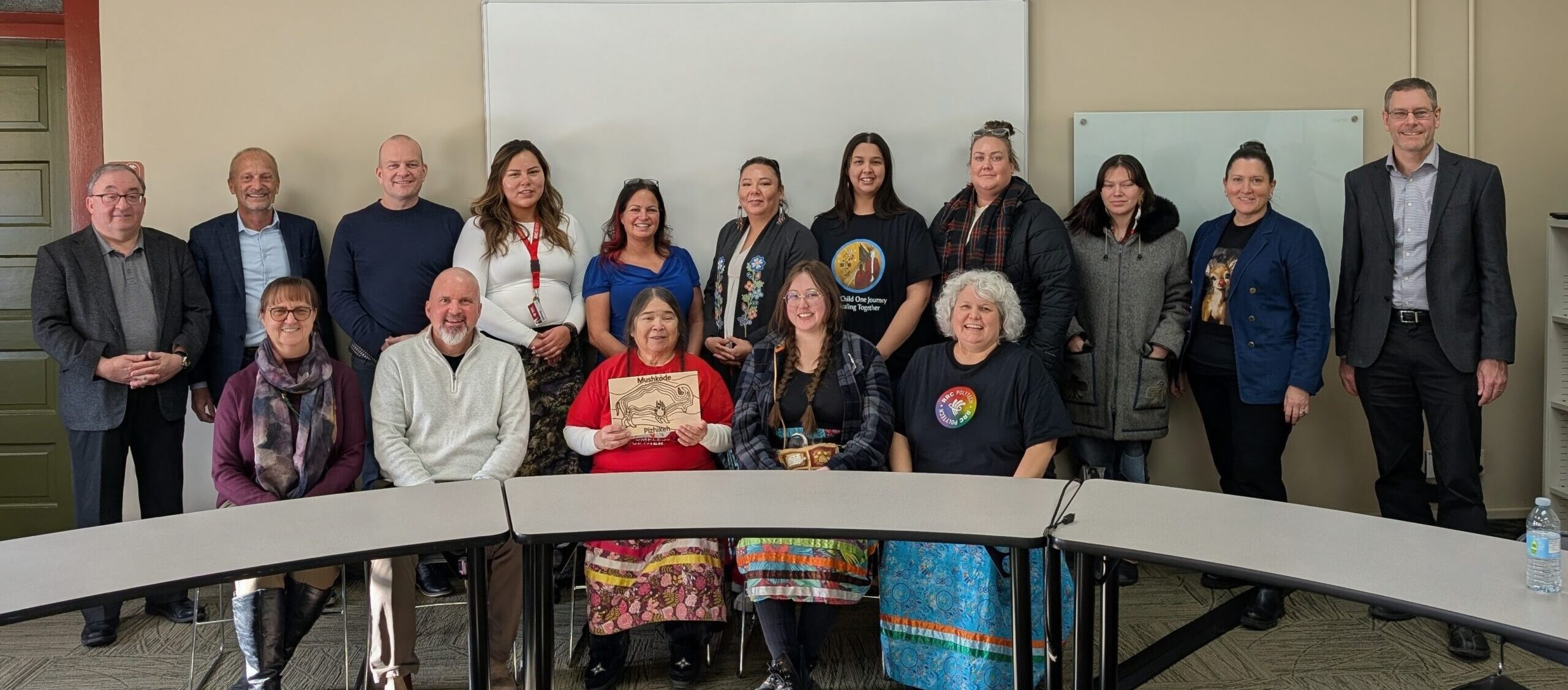 On Wednesday, December 10, Elder Roulette gathered with a group of RRC Polytech staff and members of the Portage community, including city councilors and the mayor to conduct the Ceremony to welcome the name into the space. Elder Roulette said a prayer in Anishinaabemowin before everyone was invited to smudge. Introductions went around the table and Elder Roulette shared the story of how the name Mushkode Pizhikeh came to be.