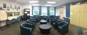 Are you looking for a space to meet with your friends, eat lunch, and/or work on group assignments? Global Connections Room is a multipurpose space where students can connect, relax or work on group projects with other students. All students are welcome in this space. It is located in the “D” building, room D 208 on the Notre Dame Campus. There is a microwave, so you could use this space to eat lunch with your friends. There is also a touch screen TV screen and plugs you can use. Feel free to use this space to work on any assignments or group projects with your classmates. It is open from 8:30 AM to 4:30 PM, Monday through Friday. Come by and bring your friends along!