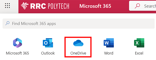 Optional location is to click Appsin the left side menu, and locate the OneDrive icon.