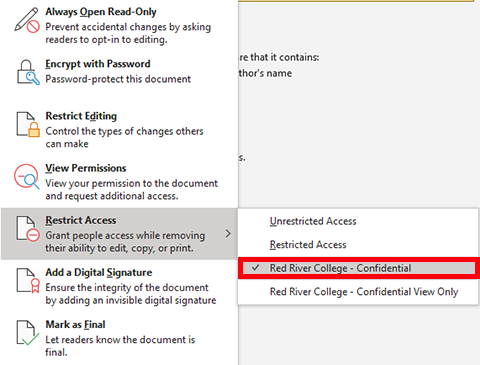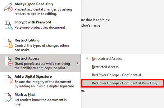 Restrict Access can be used with Microsoft Office files, including Word documents, Excel spreadsheets, and PowerPoint presentations. These directions are shown using a Microsoft Word document as the example.