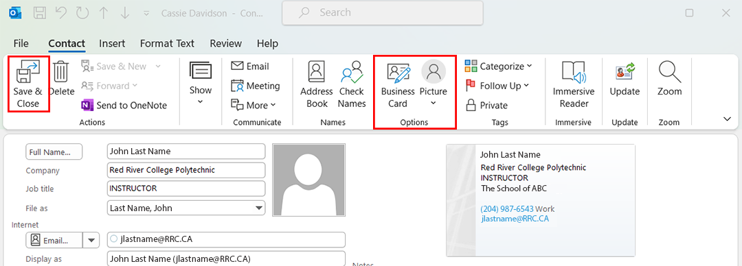 A business card in Outlook email enables you to send your contact information in a format that can be easily read by the recipient of your email. This is often referred to as a vCard. It is saved as a .vcf file, which is the Internet standard for sharing contact information. When you include a vCard in an email, it will attach it as a .vcf file and the recipient can open and view your contact information. You can also receive vcards from others, and this will display in the same way, as an attachment.