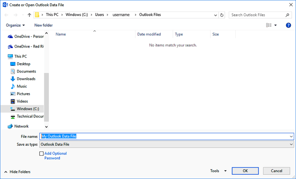 If your mailbox is full and you do not want to delete your messages, you can create personal folders (.pst files) on your local computer’s hard drive to store your messages.