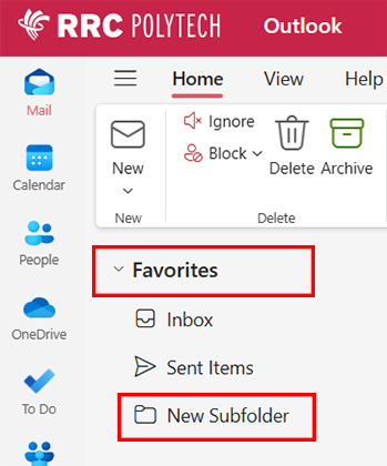 Your new subfolder will appear in your Favorites folder and will remain in the folder location where you created it.