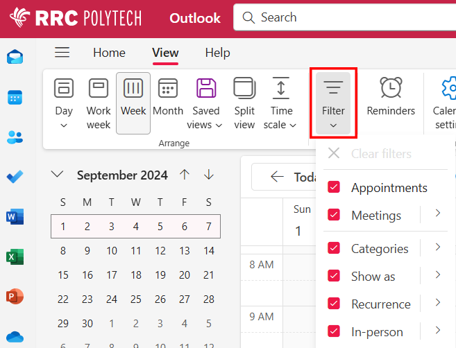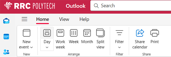 Outlook on the Web provides you many different options for how you use and manage your calendar. The Home and View tabs provide these and other options.
