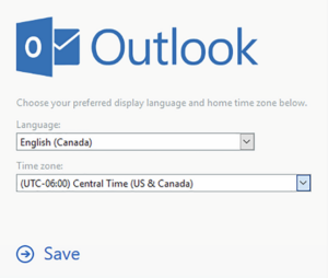 3. If you are accessing your cloud-based student email for the first time, select English (Canada) in the language drop-down menu, select Central Time (US & Canada) in the time zone drop-down menu, and then click Save.