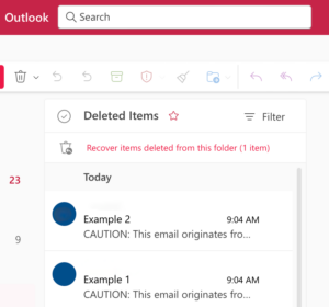 • Recover all emails – In the Deleted folder, select the option next to Deleted Items on the left.
