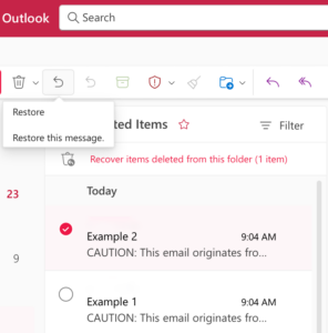 4.  Click Restore to move the email back to where it was originally, or use the Move dropdown to choose a different location.