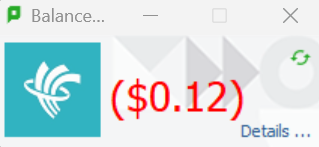 2. Click the green PaperCut MF icon to launch the Balance window and display your current print credit balance. (You also can hover your cursor over the icon in your taskbar to display your balance.)