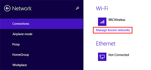 To forget the RRC Wireless network after resetting your password, follow these steps: