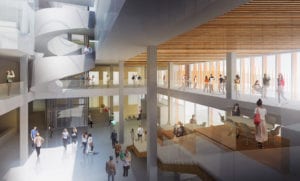 In another sense, this is about the changing face of education. The Innovation Centre won’t have many traditional classrooms, where rows of seats are aligned to face “the sage on stage.” The rooms are designed for collaboration, with open space to mingle, wall-to-wall whiteboards, and connected alcoves where industry partners can set up shop and become part of the learning process.