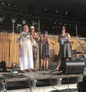 She was one of the first Indigenous artisans in the Folk Fest’s Handmade Village, and helped build early connections between the festival and other Indigenous artists. Each year, she greets artists and audiences alike at the festival’s welcoming ceremony and opening blessing — and says one of her most memorable Folk Fest moments was when seven eagles flew overheard while she was performing those duties in 2016.