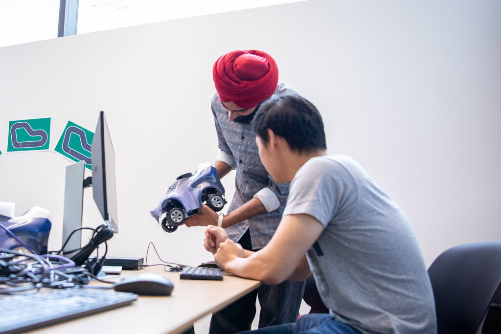 Today, the Agora of Red River College Polytechnic’s (RRC Polytech) Manitou a bi Bii daziigae building will transform into an action-packed racetrack. It’s no Formula 1 – more like Formula 1/18 – as the vehicles in question are 1/18th scale, fully autonomous race cars with all-wheel drive, monster truck tires, an HD video camera, and on-board computer.