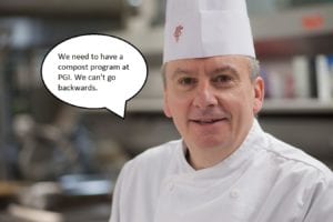 When considering this question, lots of thoughts and uncertainties come to mind. The Who, How, When, Where and How Much of a compost program need to be answered. Fortunately, one thing is clear to everyone working on this project – we must have a compost program at PGI. Because we’ve operated a compost program at the Notre Dame Campus (NDC) for more than a decade and because the College’s commitment to sustainability has only grown over the years, as Culinary Arts Instructor Jeff Gill puts it, “we need to have a compost program at PGI. We can’t go backwards.”