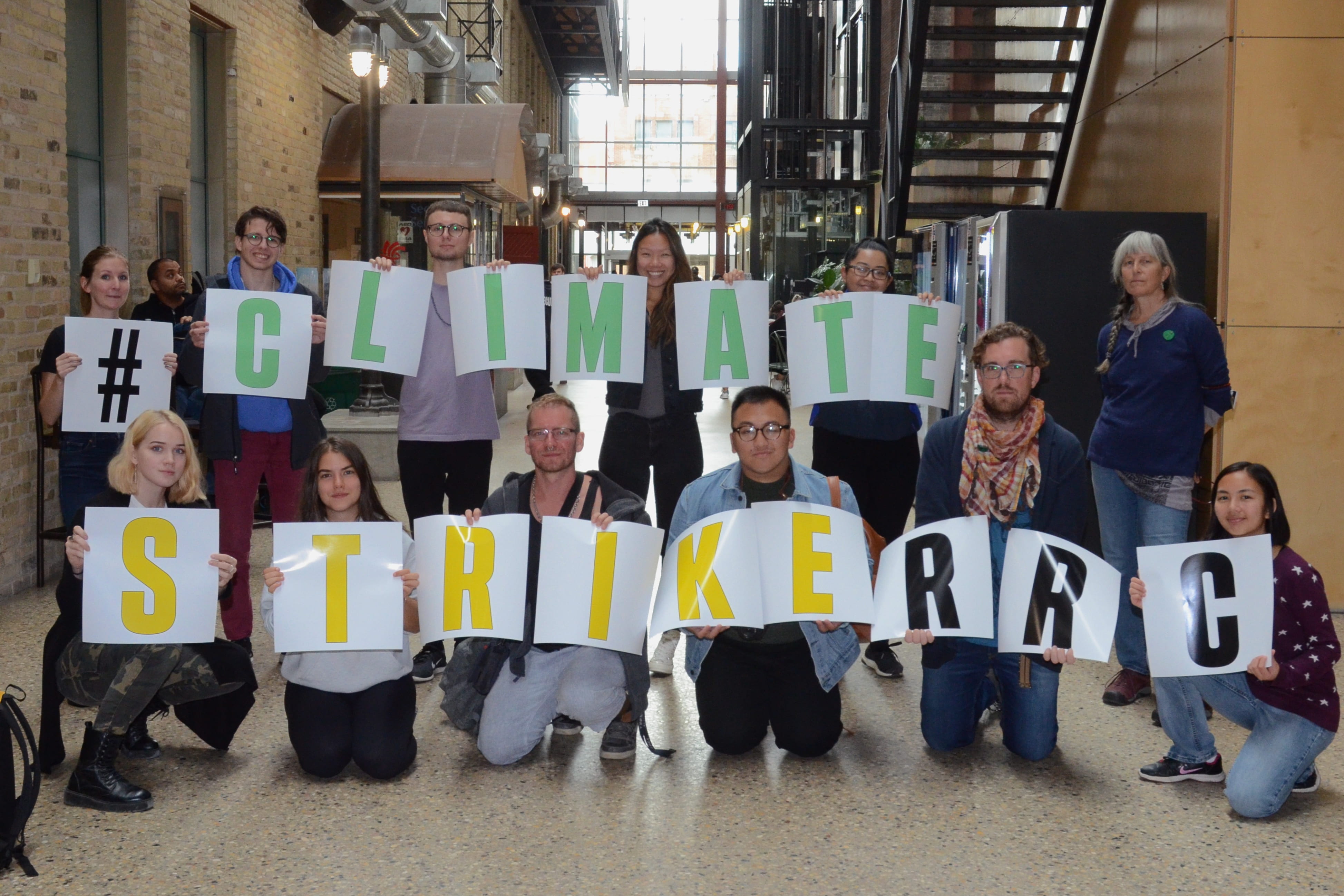 On Friday, September 27th at noon, RRC students, staff and faculty gathered together at the Notre Dame Campus and the Roblin Centre to take a photo showing their solidarity with the climate strike.