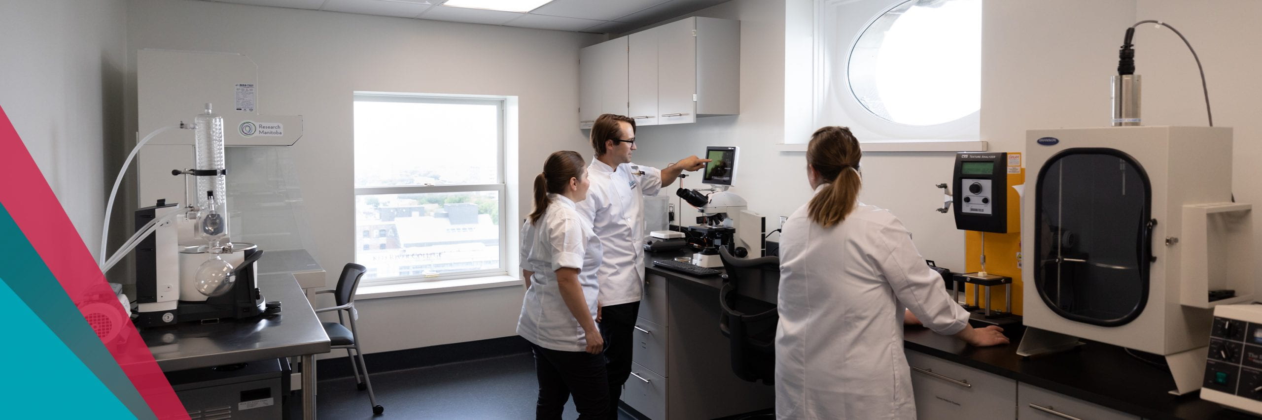 Opened in 2019 and located on the 11th floor of the Paterson GlobalFoods Institute, the Prairie Research Kitchen is a collaborative space for companies that partner with the Prairie Research Kitchen on applied research projects to work side-by-side with RRC Polytech researchers, chefs and students.