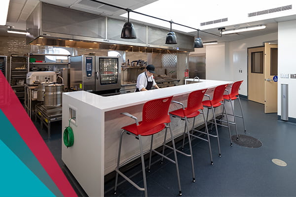 Prairie Research Kitchen’s demonstration kitchen, with its sit up bar overlooking the kitchen, is ideal to run ideation sessions with clients, researchers and instructors or showcase new products to buyers.