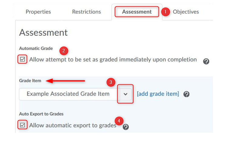 4. Use the Grade Item dropdown (3) to select the gradebook item.