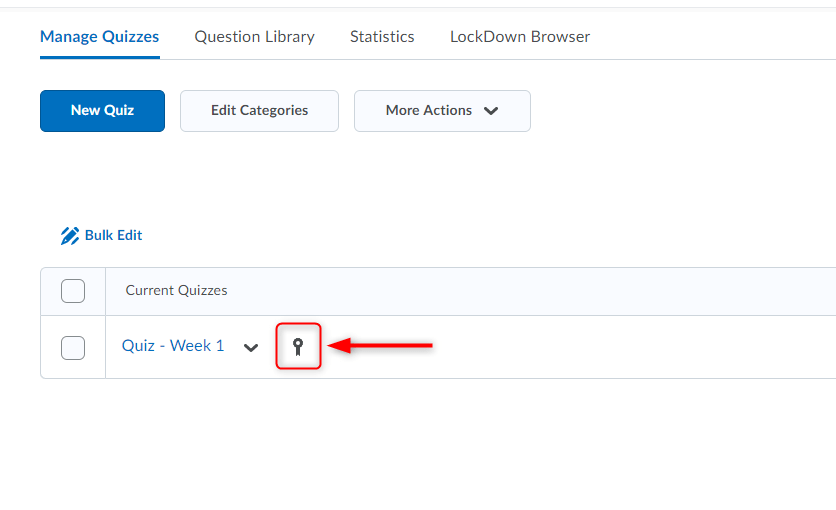 When an association is set up correctly, you will see an icon when viewing the Quiz and the association will be listed in the gradebook: