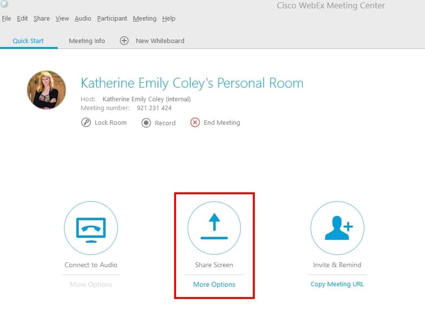 With WebEx you have your own personal meeting room (http://redrivercollege.webex.com/meet/username) that you can start any time and can invite anyone to join. No more scheduling meetings and setting up meetings rooms, just start a meeting, invite using email, and go.