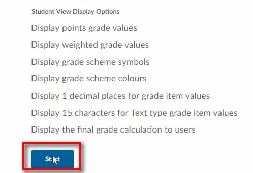 You can opt to release the final calculated grade at any time during a course. Releasing the final calculated grade early will show the students a running total of how they are doing in the course. Note that your program may have policies about not releasing the final grades to students outside of Webadvisor.