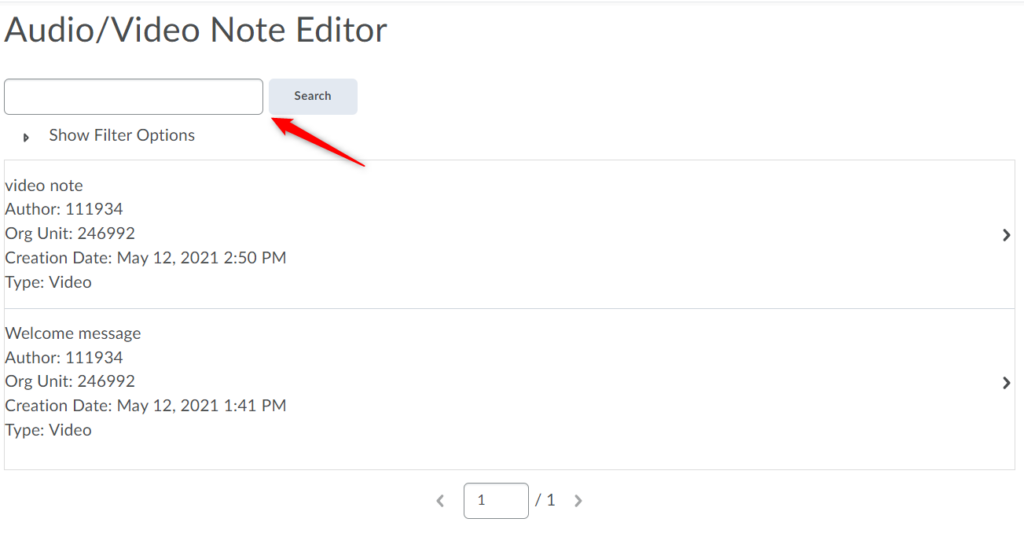 Locate the Video Note you would like to add captions to. You can use the search option to find a specific one.